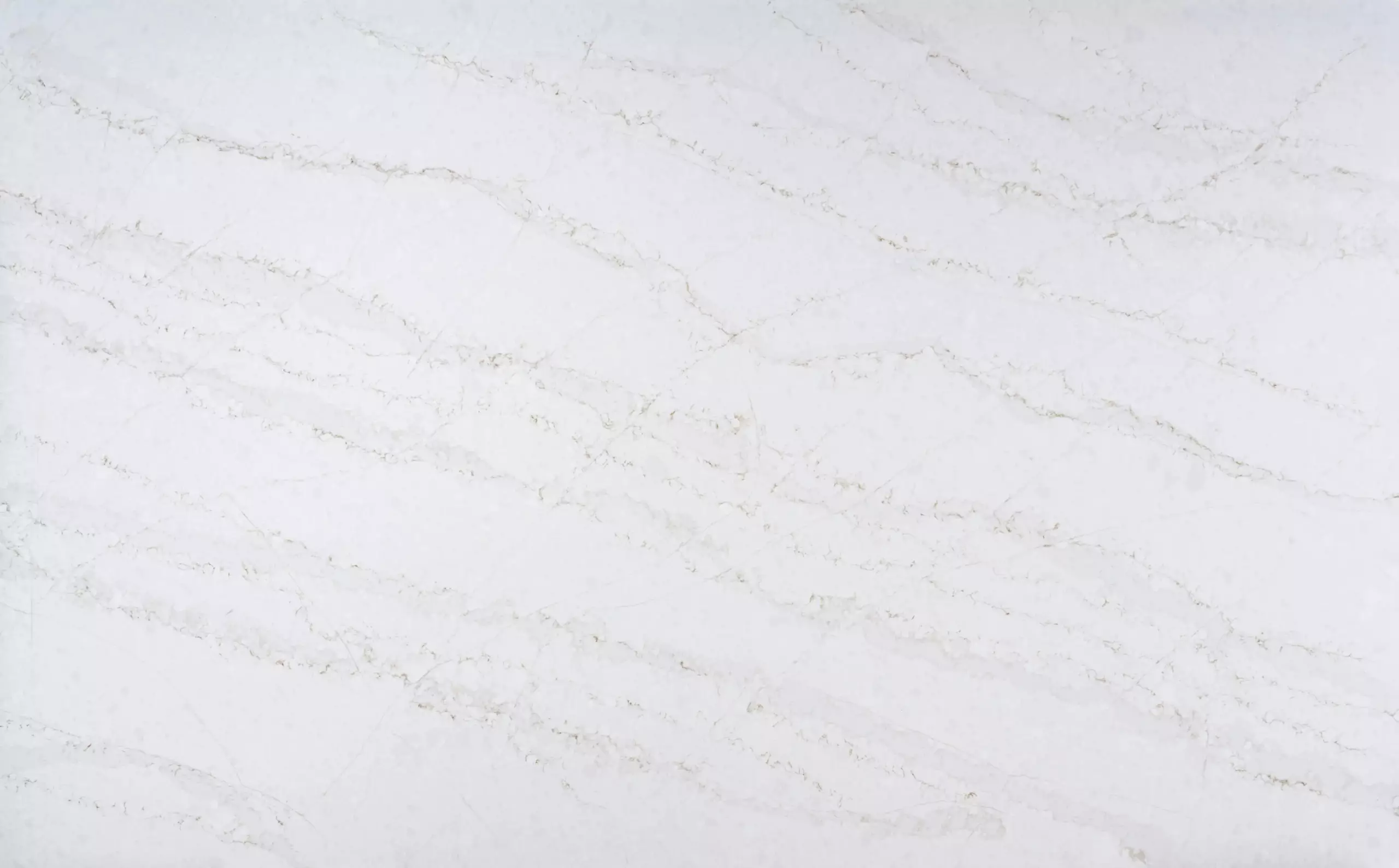 Our Atmos Gold quartz design offers delicate veining of white and beige streaks across a soft muted surface, evoking the gentle movement of clouds in a serene sky.